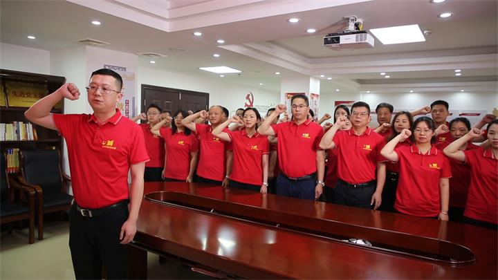 活動(dòng)伊始,支部書記陳桂軍帶領(lǐng)全體黨員面對(duì)鮮紅黨旗,舉起右手,莊嚴(yán)宣誓,重溫入黨誓詞,“我志愿加入中國(guó)共產(chǎn)黨,擁護(hù)黨的綱領(lǐng)......”。黨員們聲音洪亮,情緒激昂,每一句入黨誓詞都在提醒著黨員們,要更加堅(jiān)定理想信念,堅(jiān)守行為準(zhǔn)則,踐行黨員標(biāo)準(zhǔn),發(fā)揮黨員先鋒模范作用,用實(shí)際行動(dòng)彰顯黨員本色。