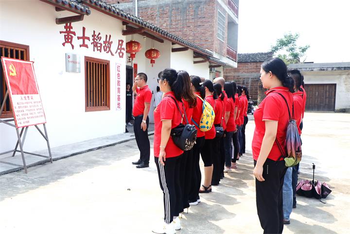 在黃士韜故居前,公司黨支部副書記蘭乾雄帶領(lǐng)黨員重溫入黨誓詞。全體黨員面向黨旗,緊握右拳,莊嚴(yán)宣誓。