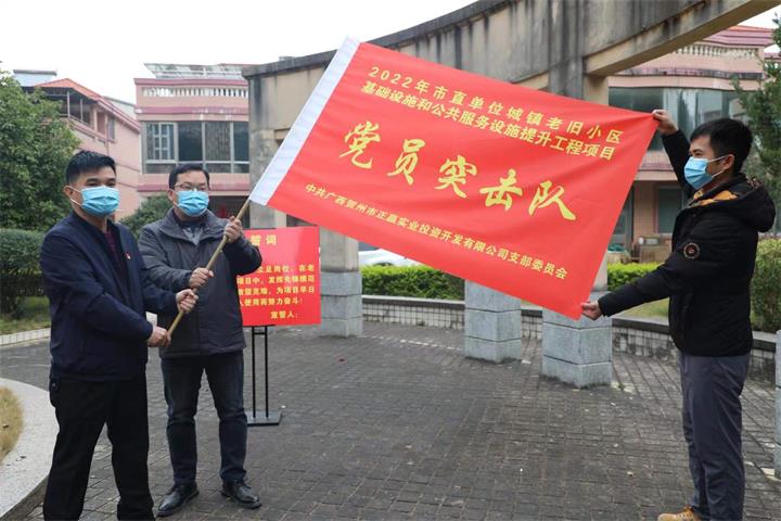 隨后,活動(dòng)人員來(lái)到了賀州市檢察院生活小區(qū),該小區(qū)是正贏實(shí)業(yè)公司負(fù)責(zé)實(shí)施的賀州市2022年市直單位城鎮(zhèn)老舊小區(qū)基礎(chǔ)設(shè)施和公共服務(wù)設(shè)施提升工程項(xiàng)目其中一個(gè)老舊小區(qū)。在老舊小區(qū)現(xiàn)場(chǎng),支部開(kāi)展了黨員對(duì)標(biāo)承諾活動(dòng),并成立了2022年市直單位老舊小區(qū)基礎(chǔ)設(shè)施和公共服務(wù)設(shè)施提升工程項(xiàng)目“黨員突擊隊(duì)”。柳國(guó)忠強(qiáng)調(diào),全體黨員要通過(guò)向身邊的優(yōu)秀黨員學(xué)習(xí)并從中確立標(biāo)桿和榜樣,在項(xiàng)目建設(shè)中以黨員的標(biāo)準(zhǔn)嚴(yán)格要求自己,帶頭攻堅(jiān)克難,沖鋒在項(xiàng)目一線,更好的為人民群眾服務(wù)。