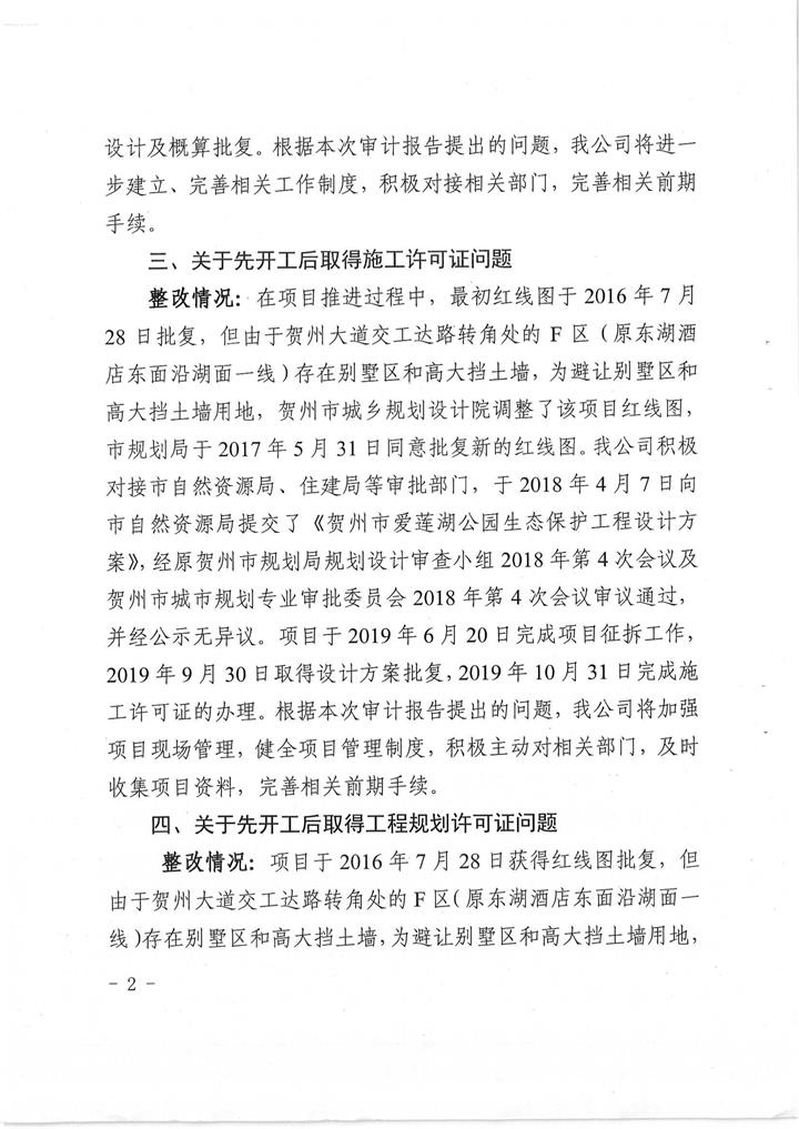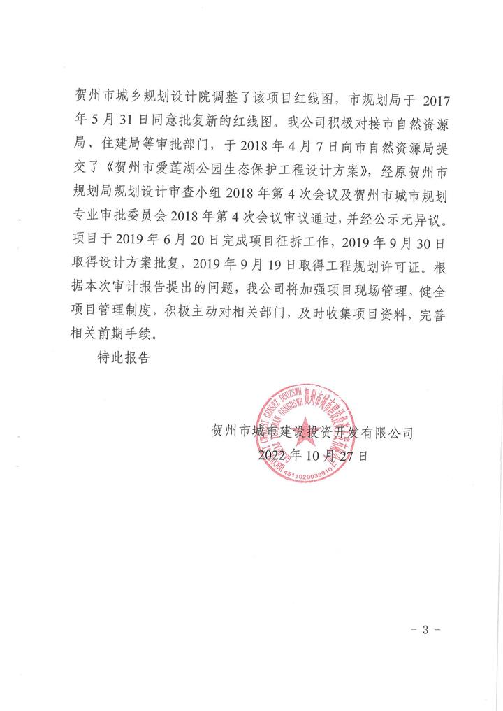 城投公司關(guān)于賀州市愛蓮湖生態(tài)保護及基礎(chǔ)設(shè)施PPP項目結(jié)算審計整改情況的報告