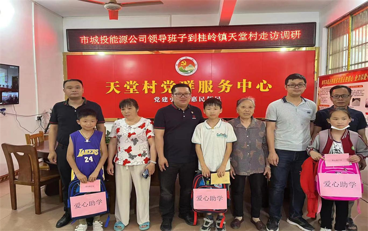 當(dāng)天下午,楊維、童杰新帶隊(duì)前往城投集團(tuán)定點(diǎn)幫扶村桂嶺鎮(zhèn)天堂村進(jìn)行了鄉(xiāng)村振興推進(jìn)情況走訪和愛心助學(xué)活動,向村委和駐村工作隊(duì)員詳細(xì)了解天堂村基本情況、基層黨建和鞏固脫貧攻堅(jiān)成果同鄉(xiāng)村振興有效銜接等工作開展情況及存在的困難。楊維對駐村工作隊(duì)員所取得工作成果給予了充分肯定,并圍繞鄉(xiāng)村振興工作中所遇到的困難逐一研究提出了解決策略,并就下一步結(jié)合能源板塊發(fā)展業(yè)務(wù)促進(jìn)鄉(xiāng)村振興提出了新思路。