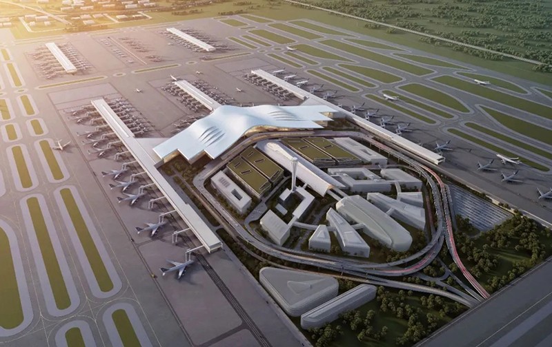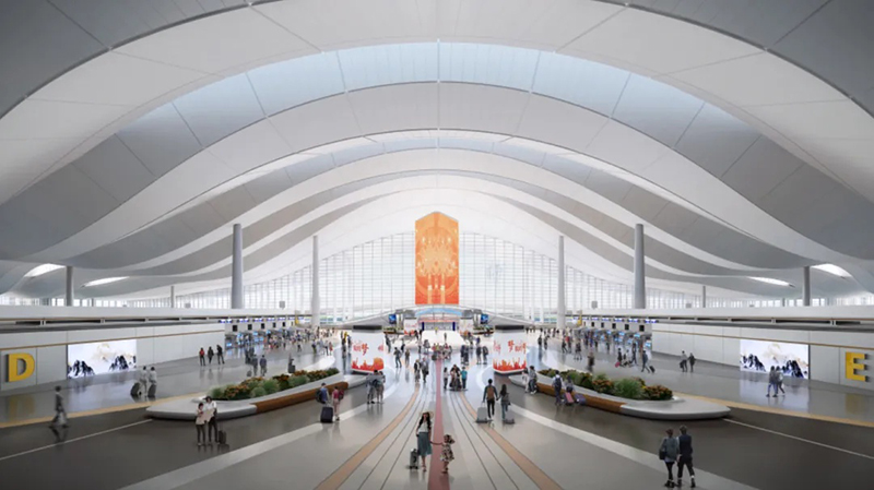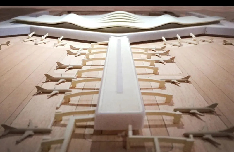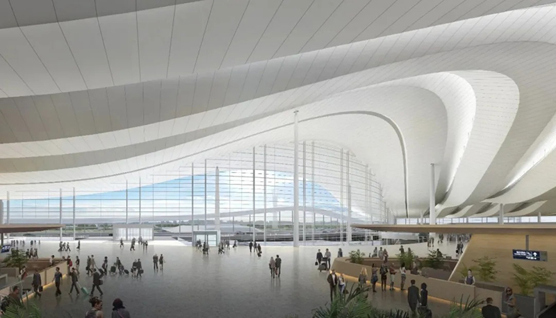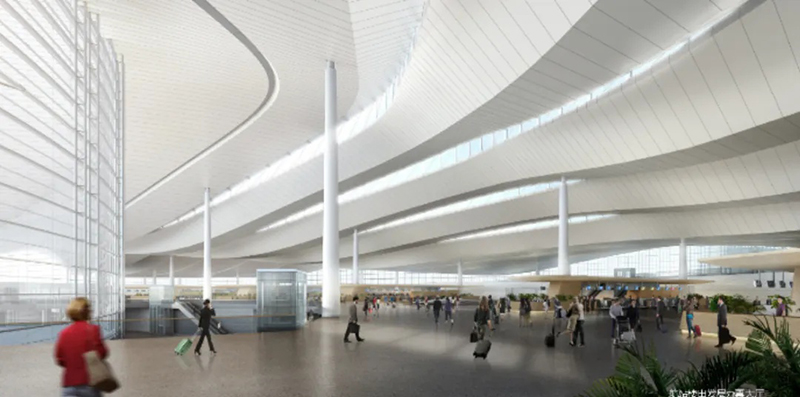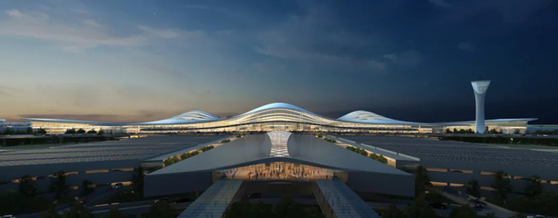 烏魯木齊天山國際機(jī)場的擴(kuò)建工程是國家“十三五”“十四五”重點(diǎn)建設(shè)項目,總投資約520億元,規(guī)劃建設(shè)兩條4F級跑道、50萬平方米的T4航站樓、177個停機(jī)位及綜合交通中心等設(shè)施;航站區(qū)采用“主樓+三指廊”構(gòu)型,地上四層、地下一層,可容納年旅客吞吐量3500萬人次,貨郵吞吐量55萬噸