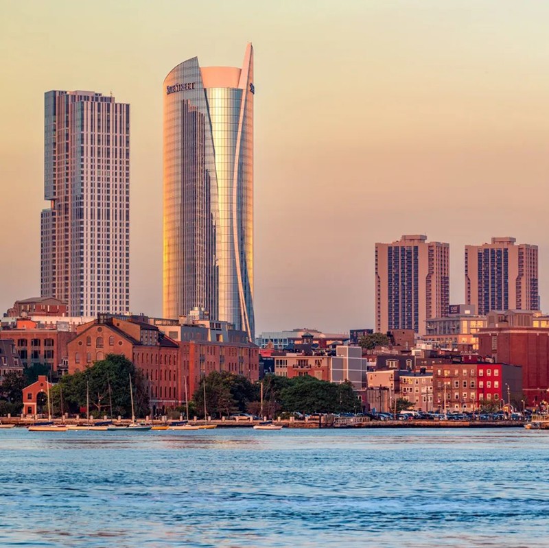 大廈高43層,其獨特的船帆造型向上逐級收攏,展現(xiàn)了現(xiàn)代建筑的簡約美學(xué),且呼應(yīng)了波士頓作為歷史港口的航海基因。