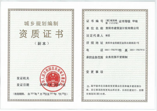 旅游規劃設計資質證書