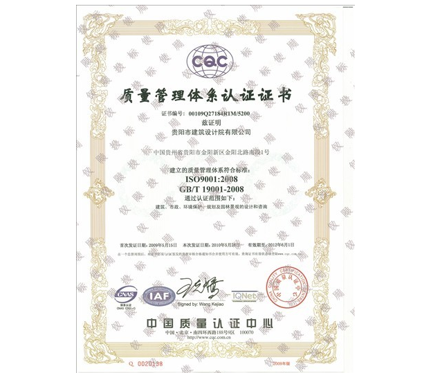質量管理體系認證證書