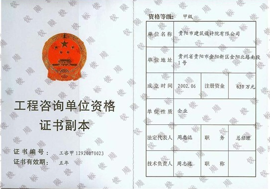 工程咨詢單位資格證書